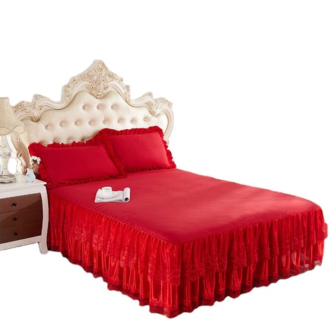 침대 시트 퀸 사이즈 럭셔리 레이스 침대 스커트 100% 폴리 에스테르