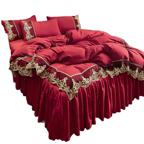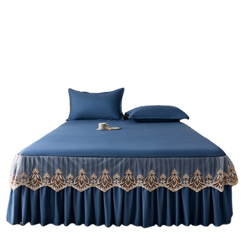 공장 주문 수정같은 우단 치마 침대 시트 베갯잇 침구 세트 레이스 침대 치마