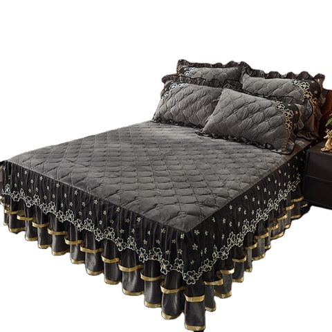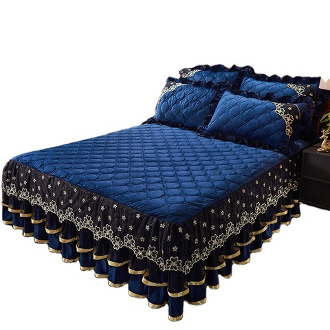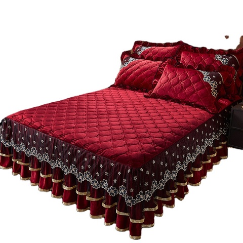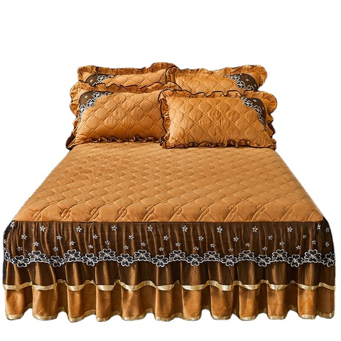 공장 주문 크리스탈 벨벳 스커트 침대 시트 베갯잇 침구 세트 레이스 침대 스커트
